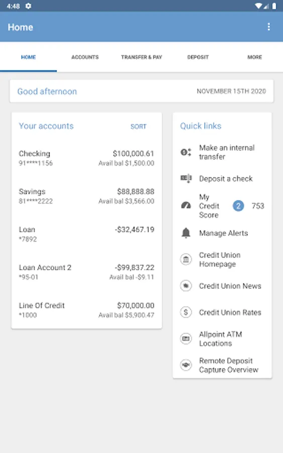 Mobile Banking offers you instant access to balances, transfers, transaction history, and mobile alerts for all your credit union accounts.