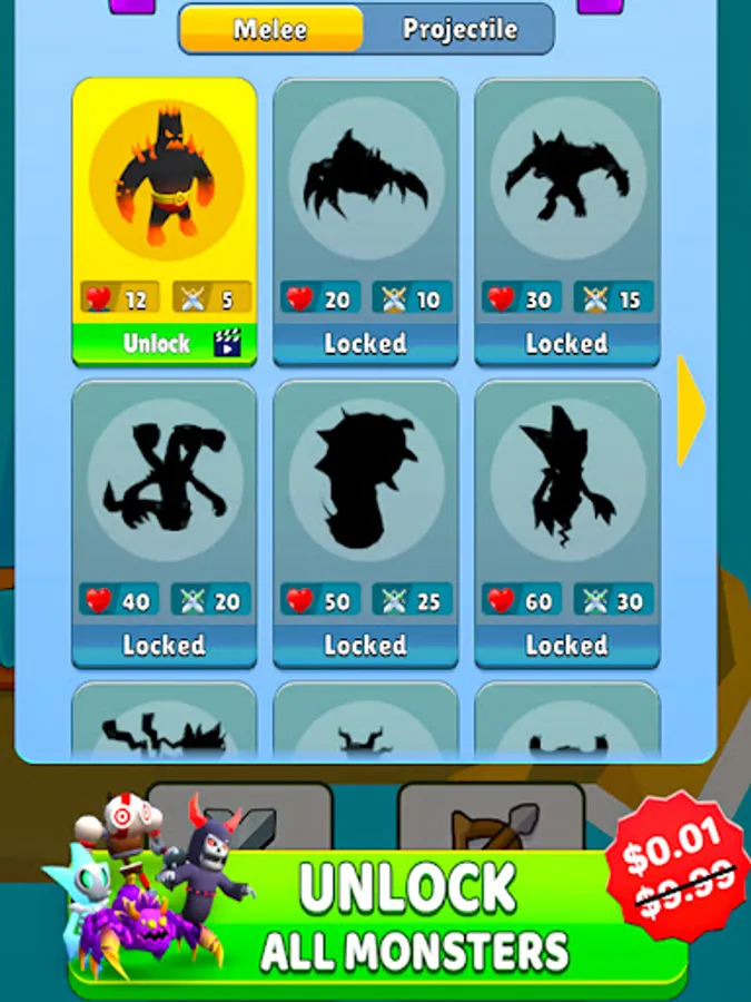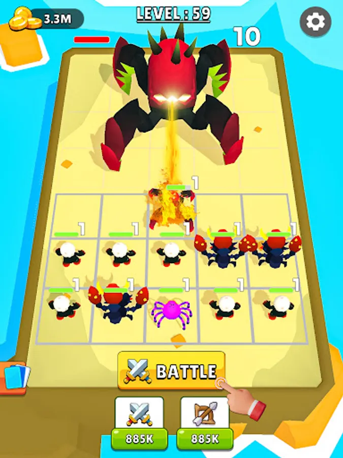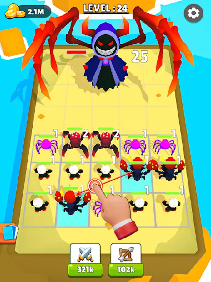 Welcome to the world of Merge Monsters, โ๏ธ an epic battle simulator that combines strategic merging and intense monster fights in a battle arena. As a player, go on an exhilarating journey of monster evolution and merge defense. Merge and fight your way through challenging encounters ๐น. Utilize your strategic powers to merge monsters and create powerful combinations, unleashing their unique abilities to overcome evil spirits and conquer the battlefield. Engage in thrilling monster battles, ๐ฆ where each merge unlocks new possibilities and unleashes unimaginable strength โ ๏ธ.