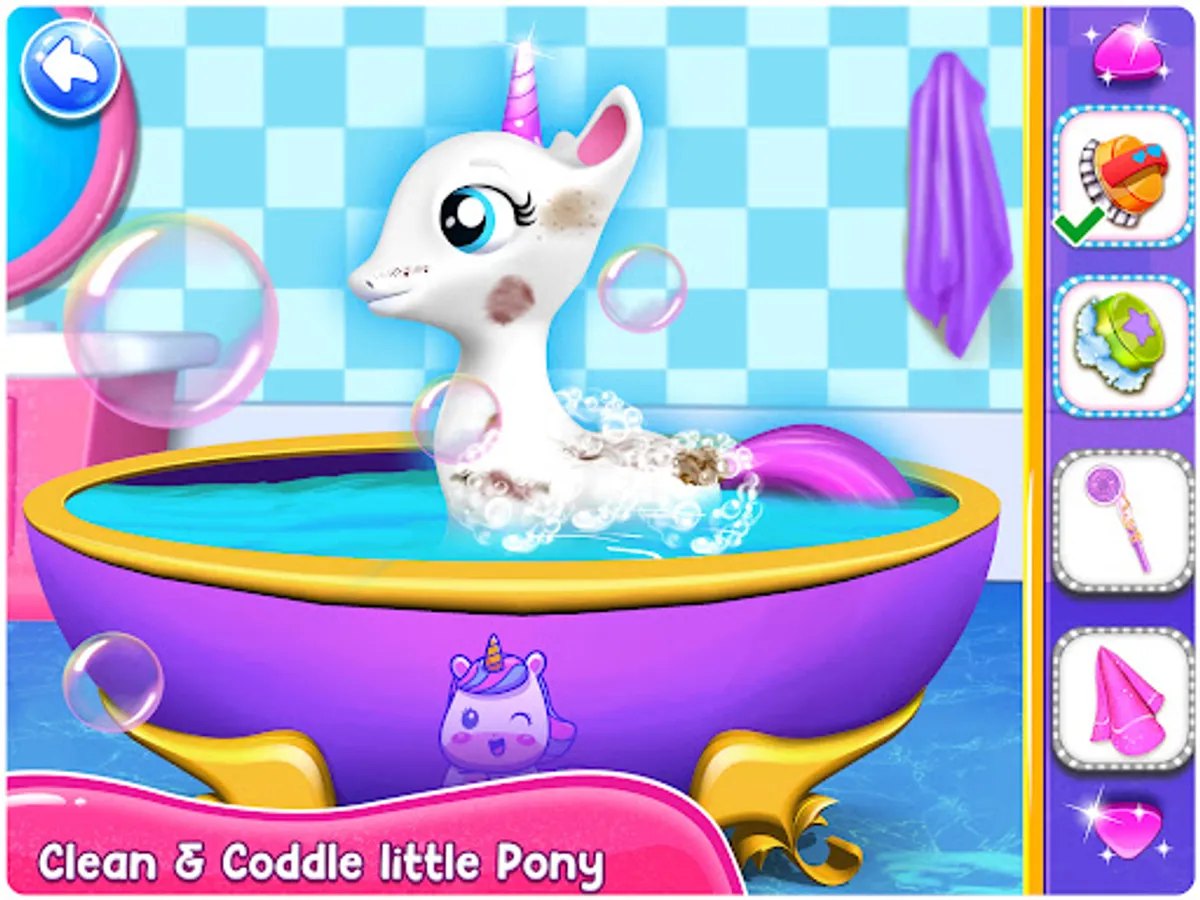 Try Fashion dressess on the pony with different special pony accessories in little pony dress up game. Pick a theme to dress up your horse accordingly and enjoy a fairy horse unicorn care game. Would you like your horse to be a princess among the ponies and loved by all her subjects in magic unicorn princess game. Or a stylish diva that stands out among her little pony friends? Choose the best items to raise your pony horse and become the best pony caretaker in the land of magical princess unicorn pony games.