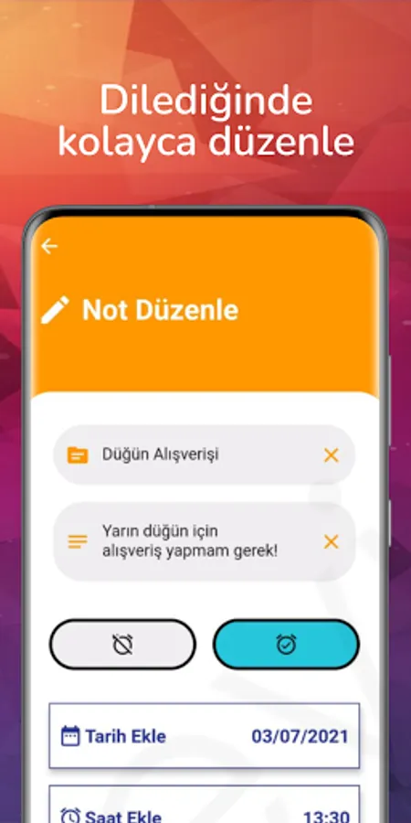 Do you have a note to keep in mind or a plan to make at a future date? Then you are in the right place. PlanyApp, where you can easily keep your notes and create your plans, is just for you. When you don't want everyone to see the notes you will keep, you can create encrypted note folders thanks to the hidden folder feature and you can be sure that only you can access them. In addition, all you have to do at a future date and when you want to remember this when the time comes, all you have to do is to activate the alarm feature while creating your plan. It's that simple. Come to the PlanyApp application and take advantage of all these possibilities!