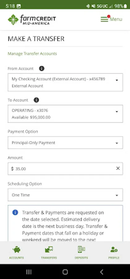 The new Farm Credit Mid-America online banking app is designed to give you the tools and features you need to manage your finances easily, intuitively and comprehensively. With it, you can: