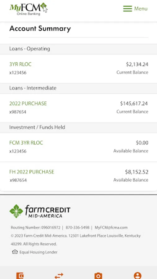 MyFCM Mobile Banking is a fast, secure service used to access your Farm Credit Midsouth account information. It is optimized for android devices and available 24/7 using your existing MyFCM username and password.