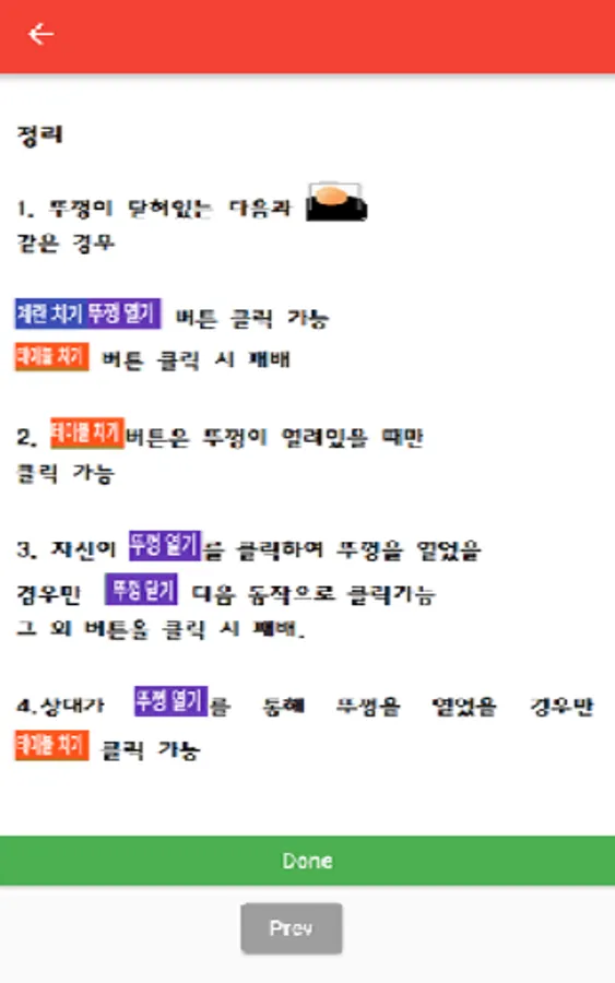 If the lid is closed, you can beat eggs or take the lid. If you took the lid, you can only close the lid. If the other person took it, you can only hit the table. Choose wisely within the time limit and beat your opponent!