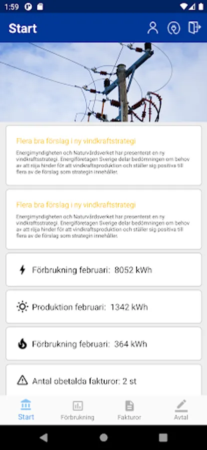 I vår app får du en enkel översikt över din över din förbrukning, elavtal och fakturor samt våra senaste nyheter!