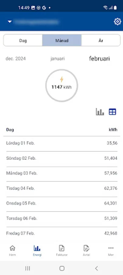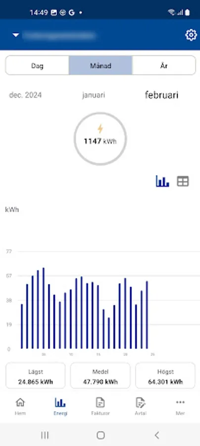 Oavsett om du är elkonsument eller elproducent så kan du se dina månads-, dygns- eller timvärden i appen när du är kund hos Grästorp Energi. Om du bor i en lägenhet, villa eller har en stor gård så är det alltid nyttigt att få tillgång till sin elförbrukning för att kunna sänka sin elanvändning. Med en minskad förbrukning så sparar man inte bara pengar, det bidrar till ett mer hållbart klimatavtryck. Vid din första inloggning kontrolleras dina kontaktuppgifter och du väljer därefter vilken anläggning (om du har flera) som ska vara förhandsvisad på förstasidan.