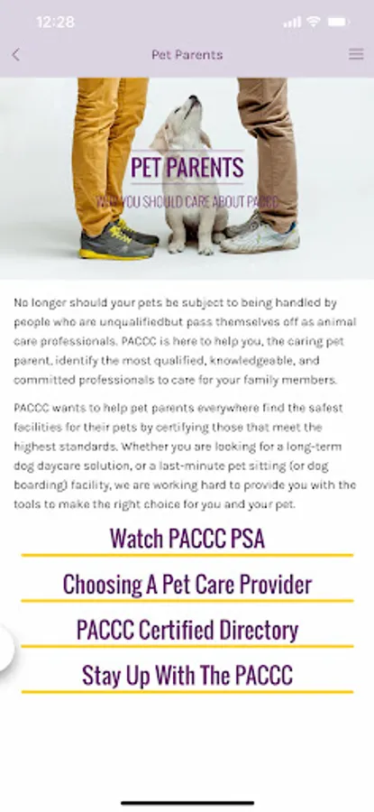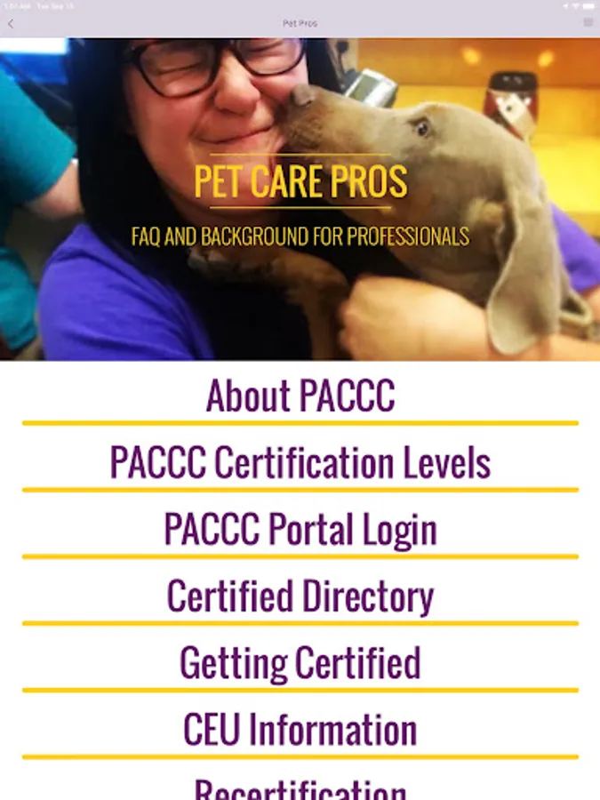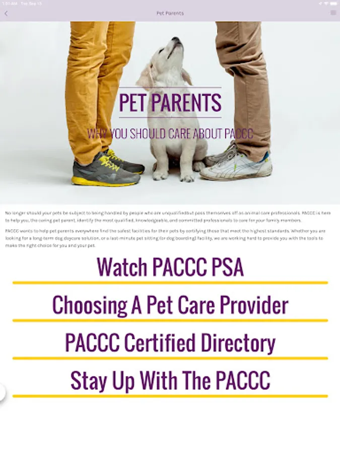 The PACCC mobile app provides easy access for pet care professionals to manage their certification process while the app also supports educating pet parents on the value of choosing service providers who are certified and recognized for their expansive knowledge and skills in caring for animals.