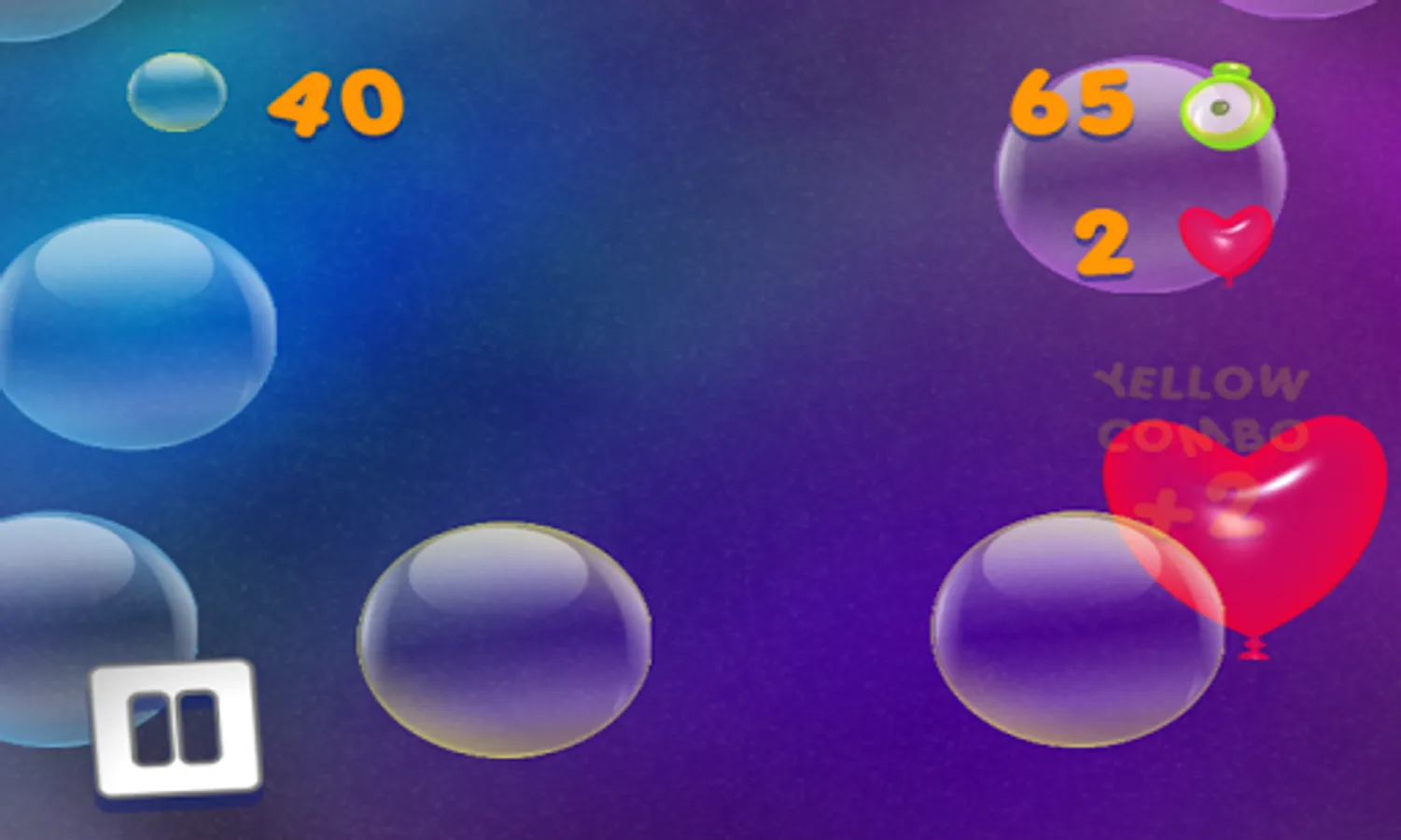 Game play is simple. Multi colored bubbles float up from the bottom of the screen.