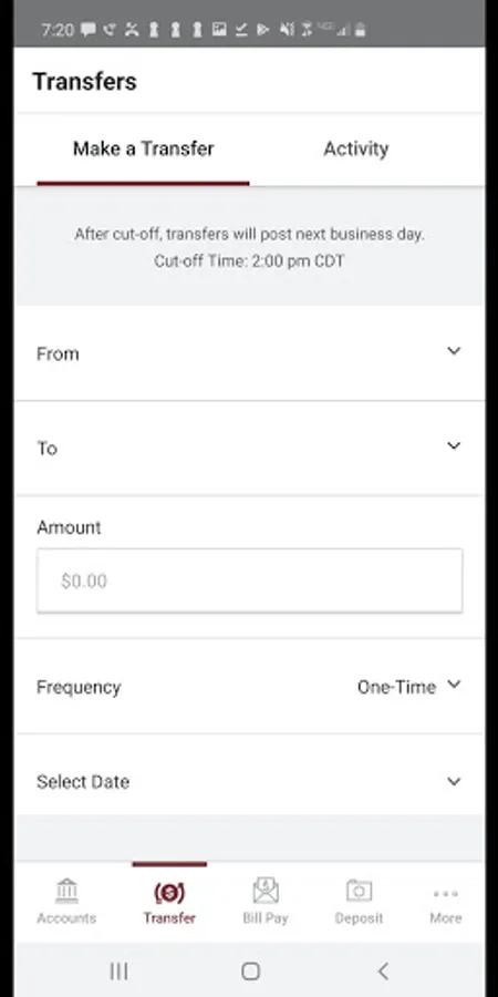 •Check your latest account balance and search recent transactions by date, amount, or check number.