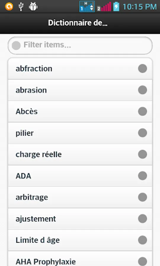 Dental Dictionary is linked to the medical line, contain specific conditions related to each dental word contain brief description to understand the term, the search option is also availabe to find a word.
