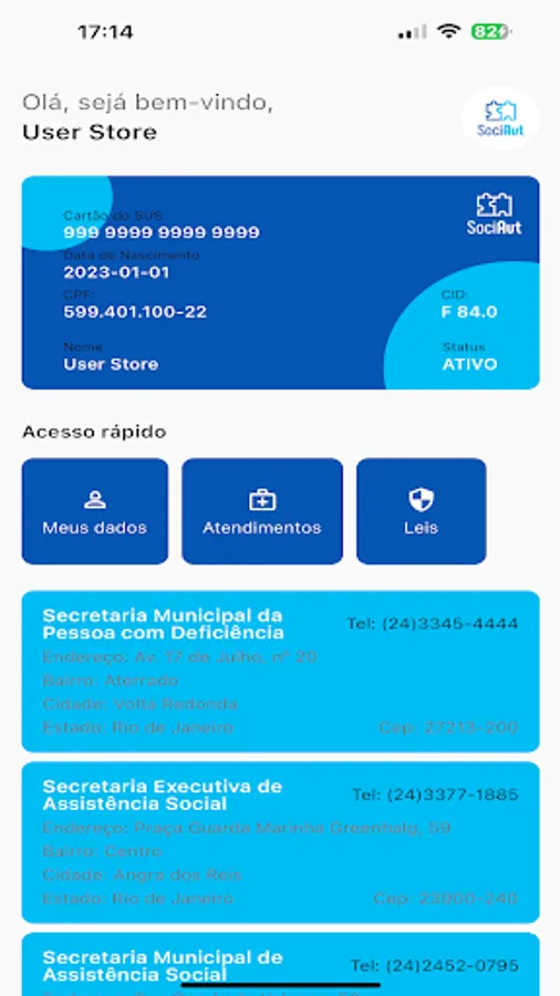 SociAut stores information in the cloud (personal data, doctors, reports, medication, therapies, contact with family members, food information, allergies and more) of people with ASD, which can be accessed by reading the QR Code printed on the card or in the app itself. Preventing the person responsible for the ASD carrier, or himself (since many manage to lead a practically normal life), from having to carry folders with various documents, either to guarantee their rights before a company or public body, or to access new services.