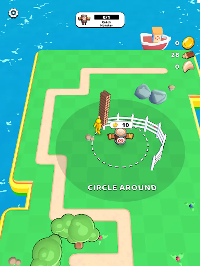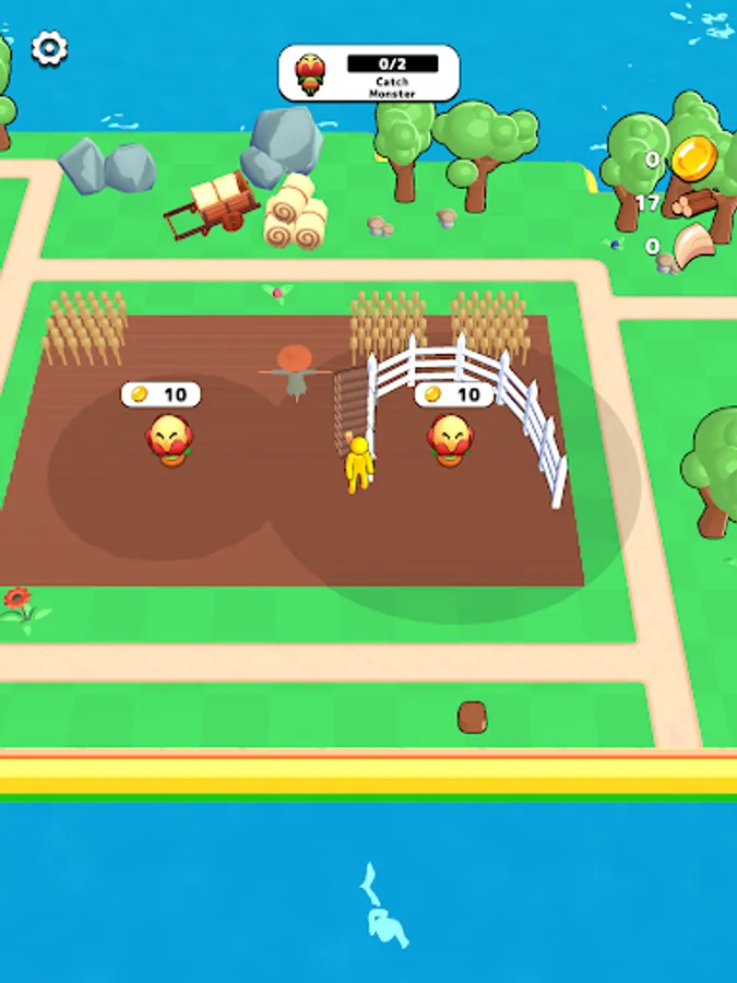 To catch the monsters, you'll need to collect wood and build a fence around them, circling them in and capturing them. Each monster has its own unique price, and as you catch more monsters and earn more money, you'll be able to unlock new islands and catch even more creatures.