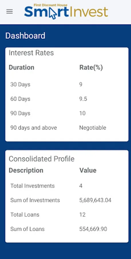 FDH SmartInvest app allows First Discount House individual clients to be able to access their investment account balances, create instant reverse repos and also view reverse repos.