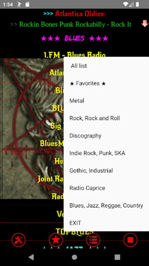 The design is decorated in the style of heavy metal. The skull - is the stop button! The app has a free equalizer.