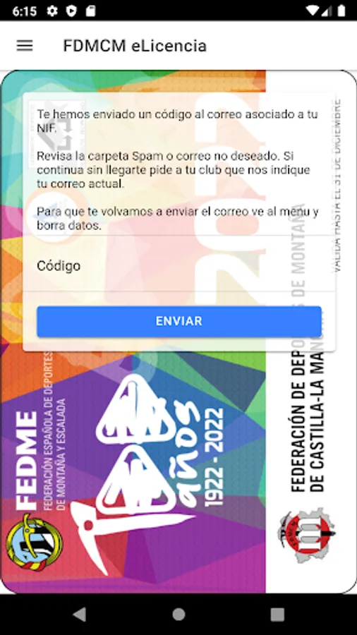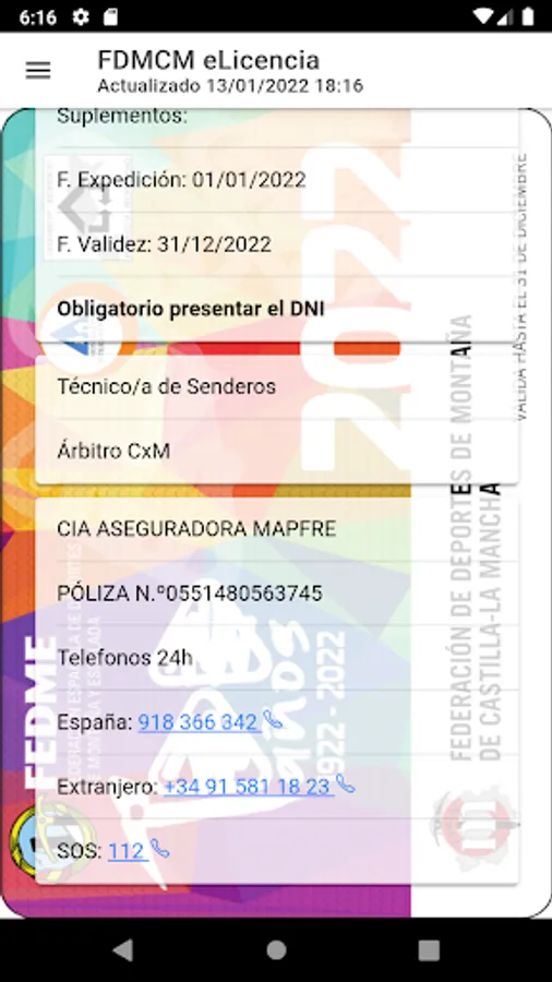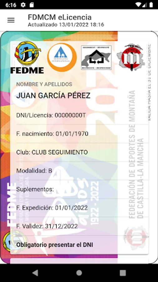 Virtual federative card of the Mountain Sports Federation of Castilla-La Mancha.
