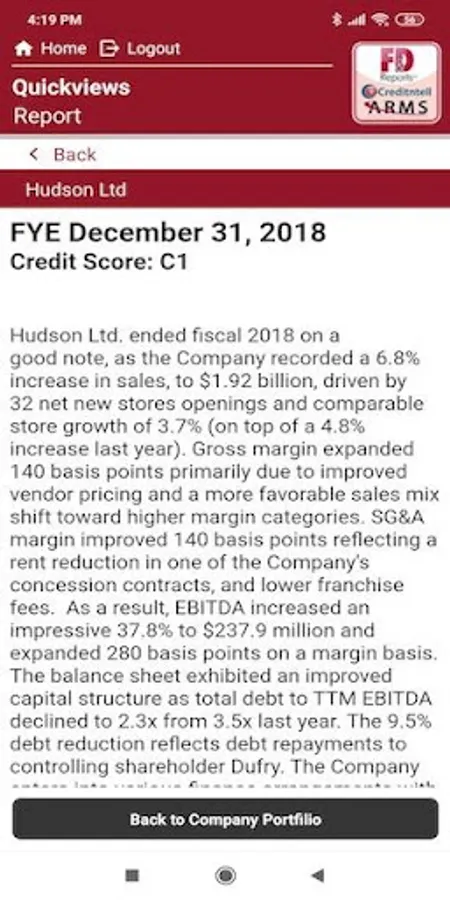 Powered by industry-leading credit consulting firm Information Clearinghouse, Inc. (ICI), through its F&D Reports and Creditntell divisions and sister company FDARMS, the Quickview application is a credit manager’s mobile toolbox, which allows subscribers to access ICI’s timely and credit-relevant information while on-the-go.