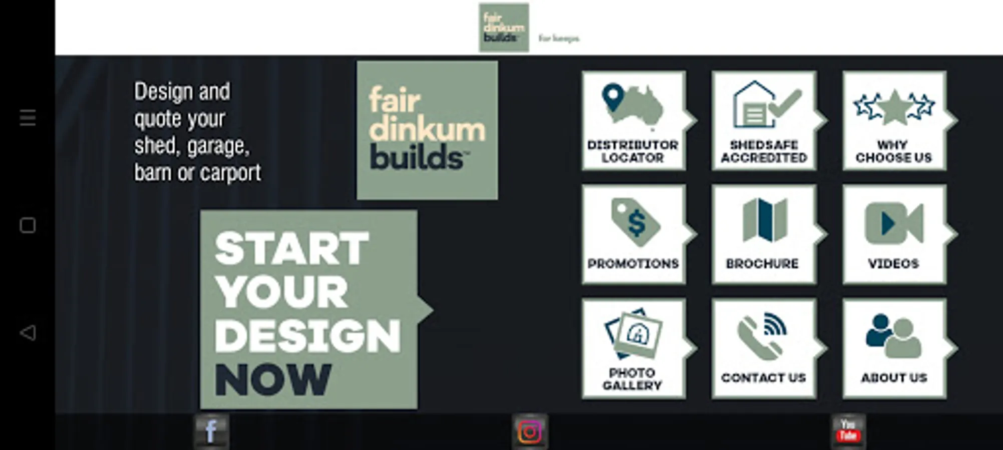 Fair Dinkum Builds new shed design app lets you create your own steel shed, barn, garage or carport.