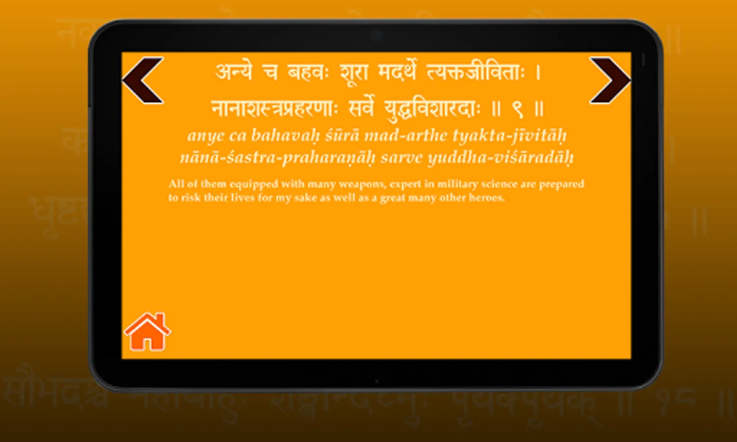 This application aims to provide a quick pocket reference and memorization-aid for the verses of the Bhagavad Gita.