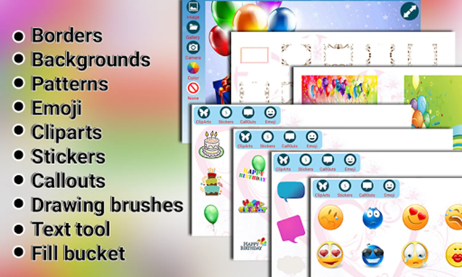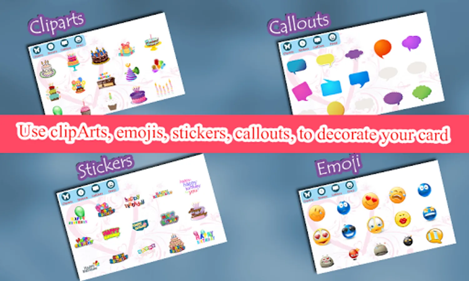 Simple and easy to use Birthday Greeting eCards maker app, allows you to pick ready cards from a variety of high quality cards. They are not just images, but custom designed cards with beautiful text messages or create your own customized card in 3 simple steps. 1. Choose your background, 2 Decorate your card with clip-arts, stickers, emojies and borders, 3. Add your message as text or by finger draw. Your card is ready to share with social apps like facebook, twiter, whatsapp, email, messages etc. Or you can save to send latter.