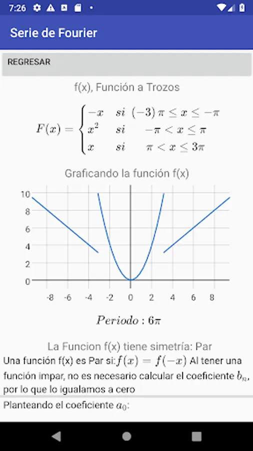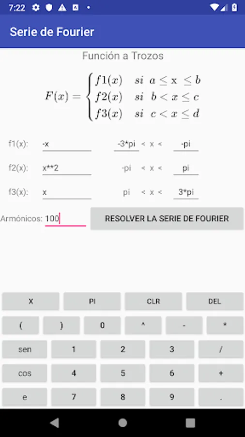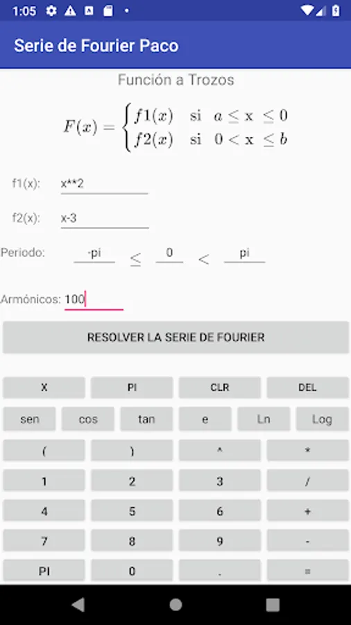 - Accepts a continuous function defined in a range {-x <= 0 - Accepts a function defined by 2 parts, in a defined period.