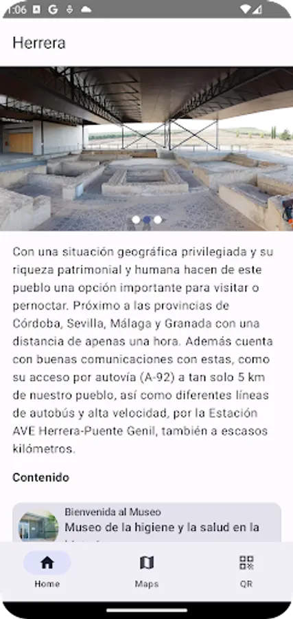 This application is the perfect complement for sightseeing in the town of Herrera in the province of Seville. In it you can find texts, photos and audio guides in charge of narrating all the points of interest in this town such as the museum of hygiene and health in history or the Roman baths.