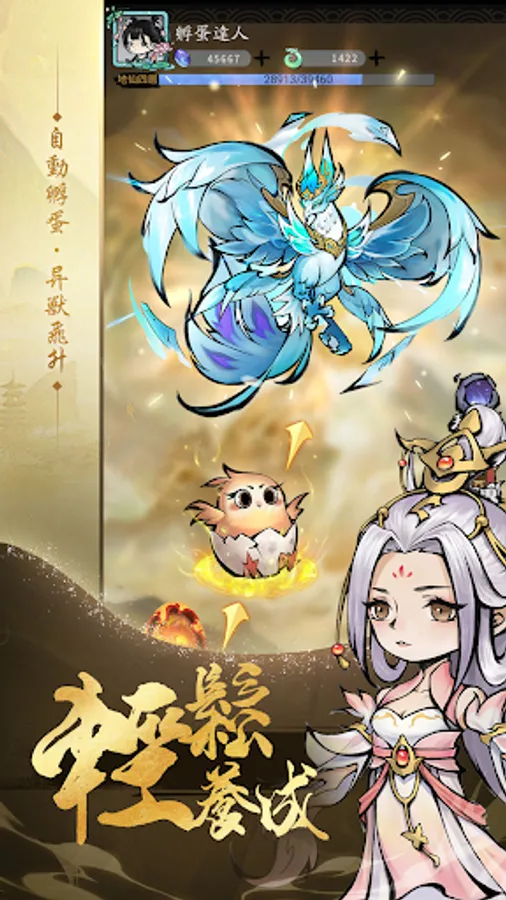 "Hatching Eggs, I'm the Strongest" is a world background based on the Classic of Mountains and Seas, with exquisite graphics, bright soundtrack, and a fascinating main plot, full of cultural heritage. The game adopts the PVP mode. The gameplay needs to constantly hatch eggs and beasts, upgrade equipment, try fighting skills, and break through realms.