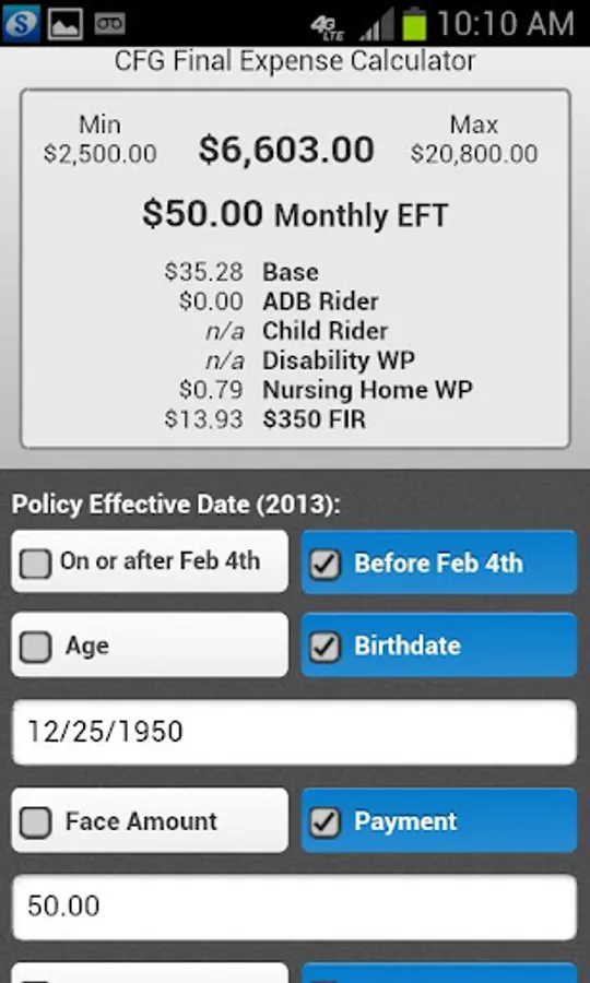 Final Expense Calculator for Columbian Financial Group's Producers.
