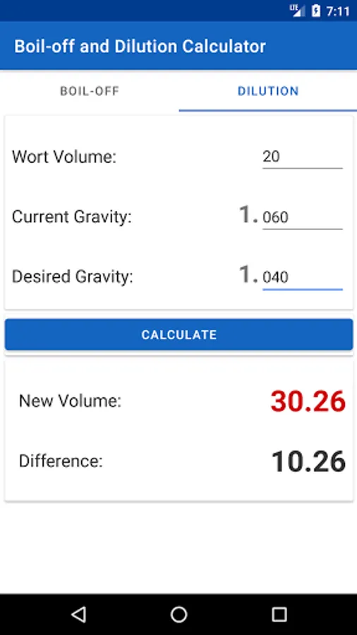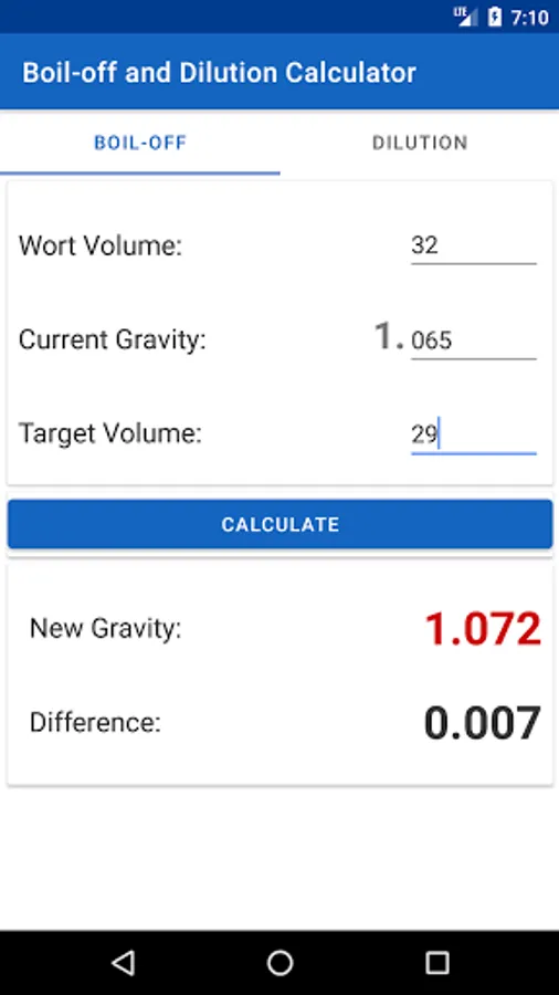 Calculate how much you need to dilute or boil the volume of your wort to reach a certain gravity. Helps you achieve the correct wort volume and target gravity for your homebrew!