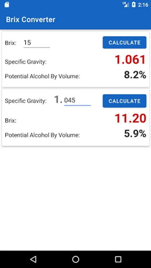 Converts Brix to Specific Gravity and Specific Gravity to Brix. Some hydrometers have only one or the other, which is where this calculator comes in. Computes potential alcohol by volume (for use in dry wines). The Plato and Balling scale are very close to the Brix scale and can be used here interchangeably. The higher the number, the more sugar is in solution. Ultimately this translates into a higher alcohol volume in the finished product.