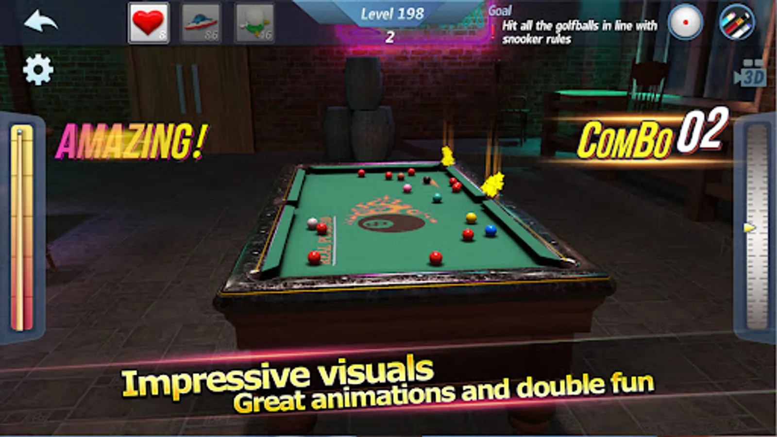 🥇Amazing Single Player Mode, enjoy 8 Ball and Snooker.