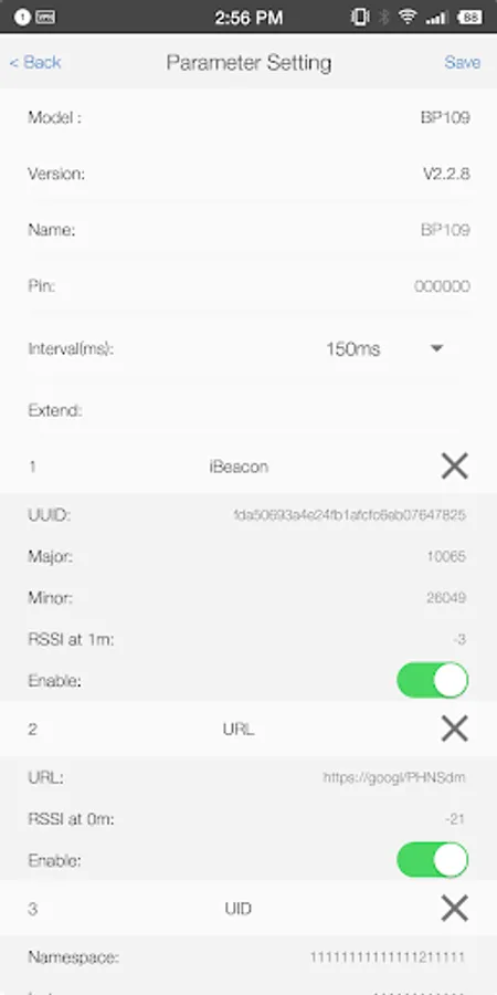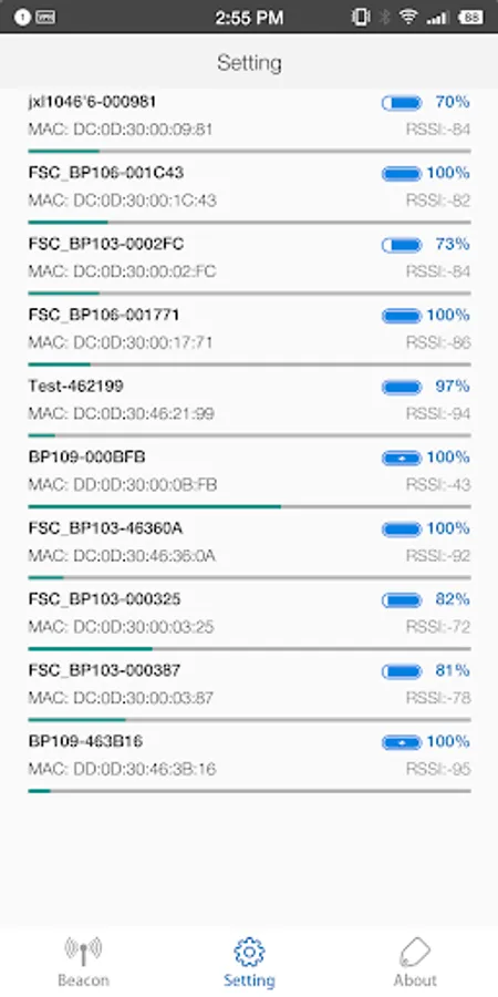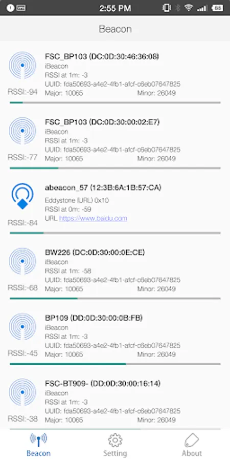 2 Display the nearby Beacon devices’information during searching operation.