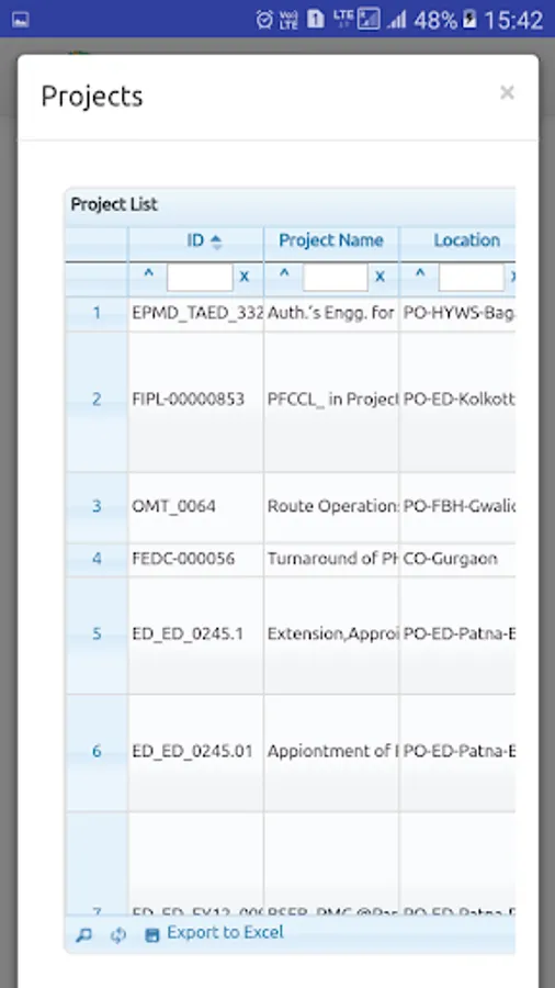 All projects mapped categorically with different colors that indicates the geo locations of each project and also included individual project details