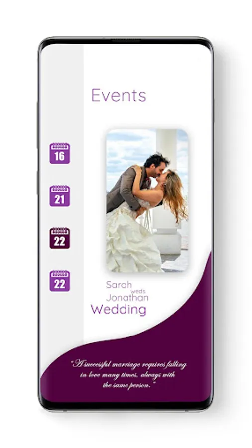 Wedding changes according to cast and religion. So we help to get you a personalised app with all your wedding details in your family and friends finger tips with Bride and groom details, Family details,Wedding events, venue, date and time customised photo gallery with social media share with customised wedding photo frame with hassle free usage and unlimited downloads making the customers to get the best use of Knote App from any part of the world.