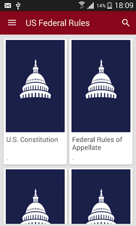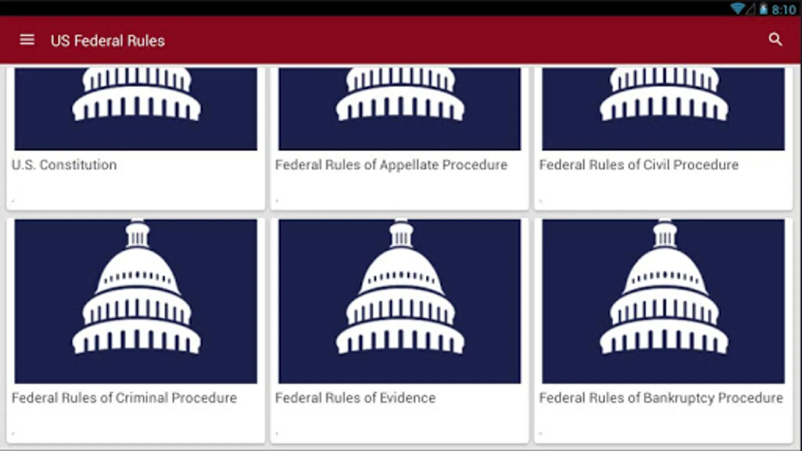 ⚖ this Law App, consists of bill of rights and united states Constitution Federal Law, Federal Rules of Civil Procedure and Criminal Procedure, Federal Rules of Evidence and Fed R of Appellate Procedure and Bankruptcy Procedure.
