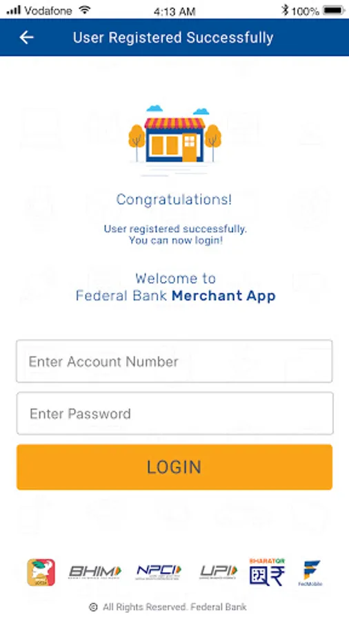 The Merchant should have valid Bharat QR/ UPI QR registered with Federal Bank before registering on the app. He/ She can also self-register for accessing this app.