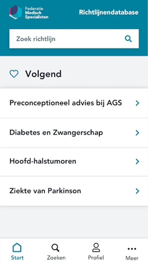 Richtlijnendatabase Screenshots