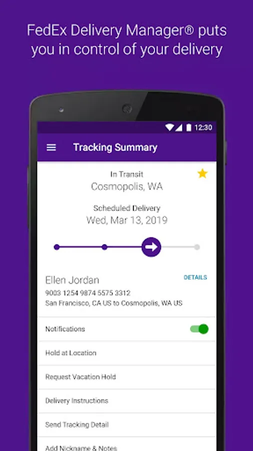 • Enable push notifications to get updates on your shipments and a sound notification on delivered shipments*