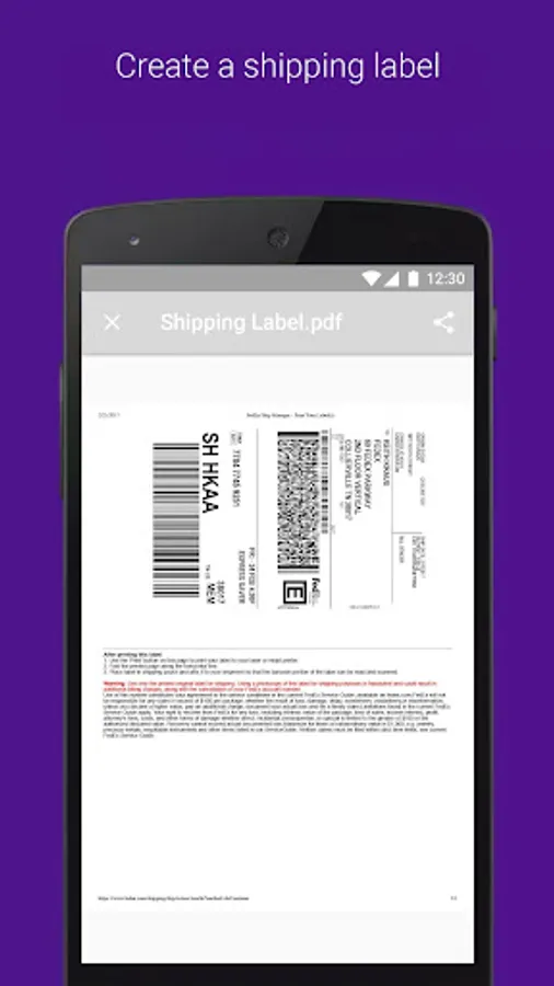• Create a mobile shipment label and request a pickup**