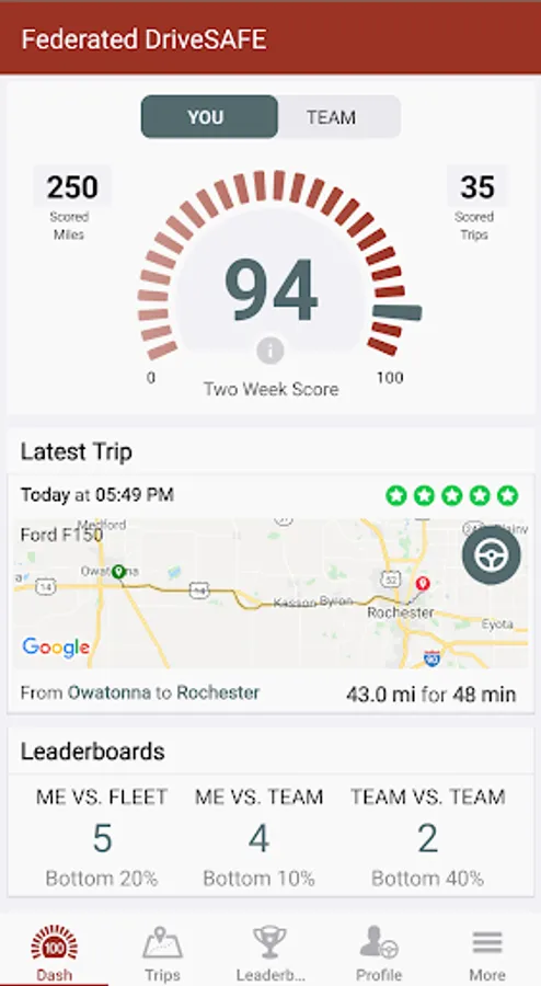 Federated DriveSAFE℠ is designed to help recognize and promote safe driving at your business while giving you valuable insight into the performance of your company drivers and fleet vehicles. App features include: