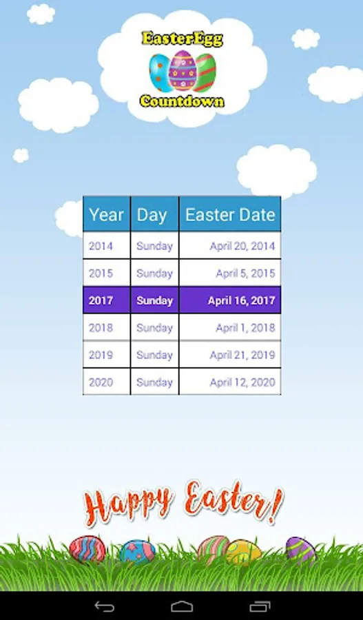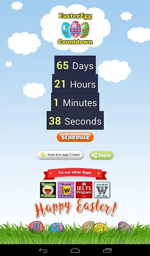 Easter Egg Countdown App counts down to Aril 17, 2022. It shows the remaining number of days, minutes, and seconds. Come and celebrate the upcoming Easter Egg Hunting event with us!