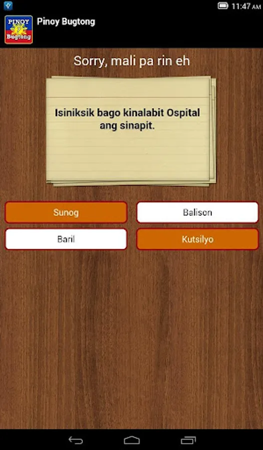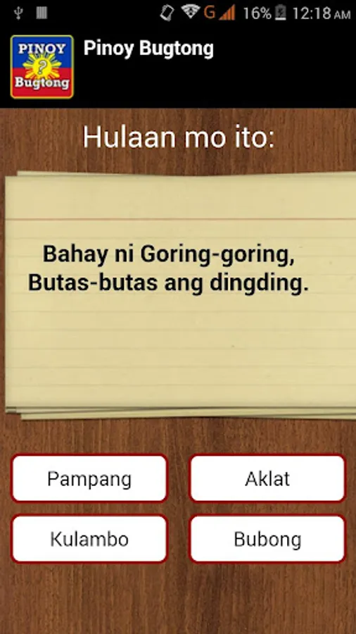 Pinoy Bugtong (Riddles) is a collection of popular tagalog quizzes that many Filipinos have knowned.