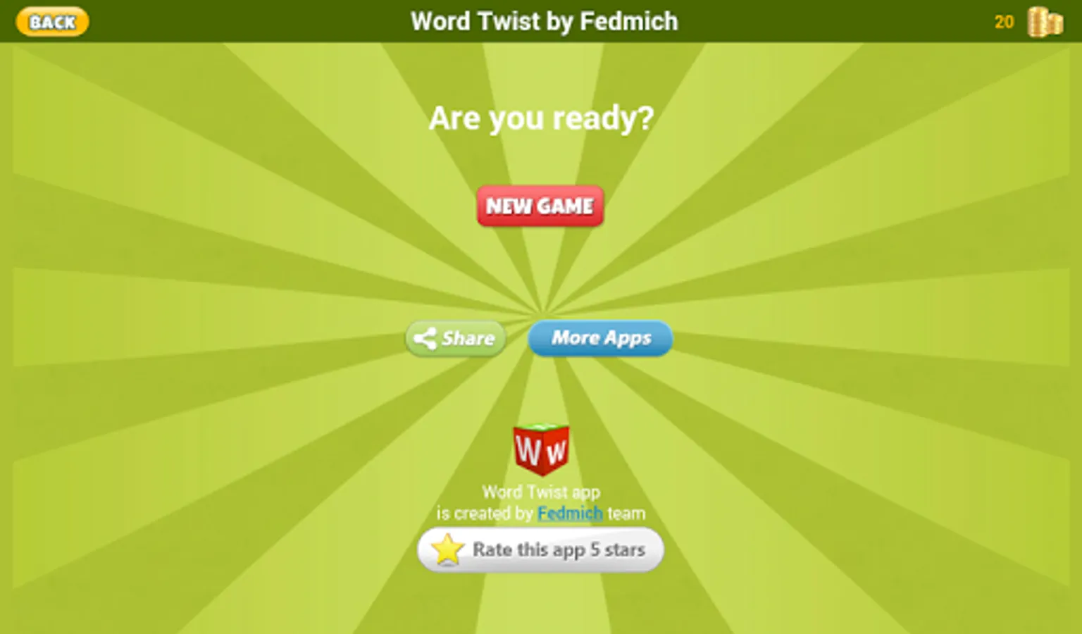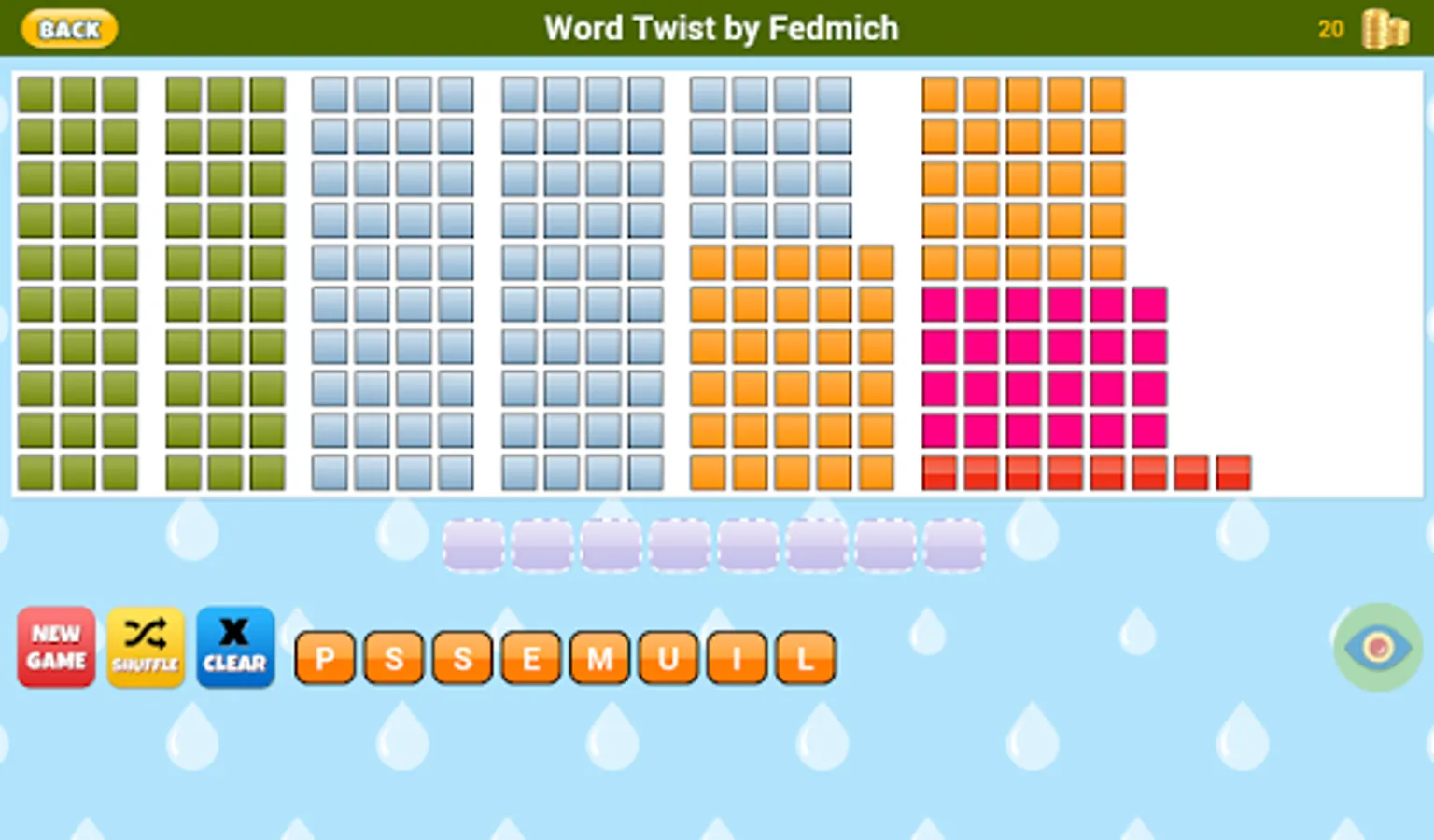 Word Twist by Fedmich is a puzzle game that challenges you to guess the different English words that can be formed.