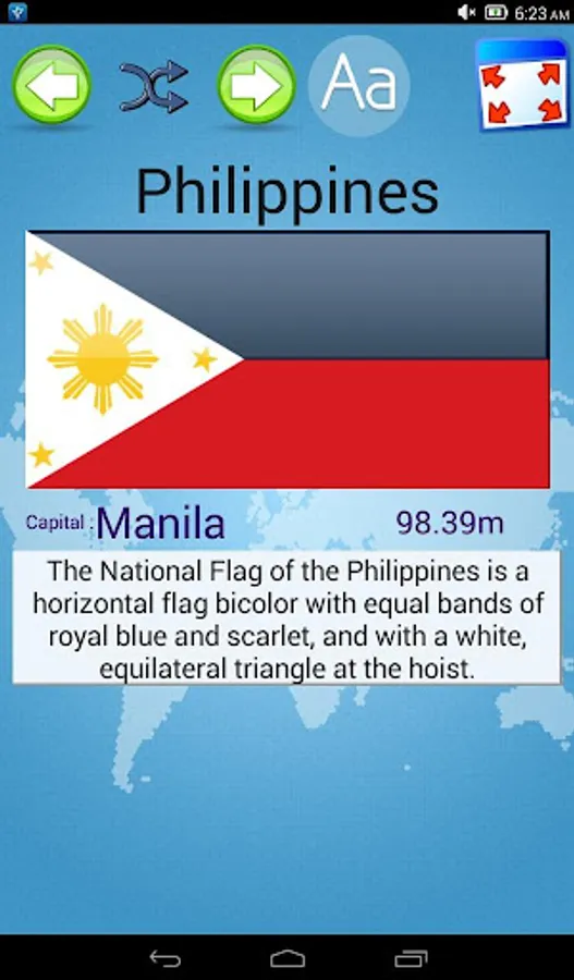 This is a good game that you can use to teach your kids about geographical infos and to learn about the names of the Flags. Each names of the flags are shown on the Countries / Capital Cities.