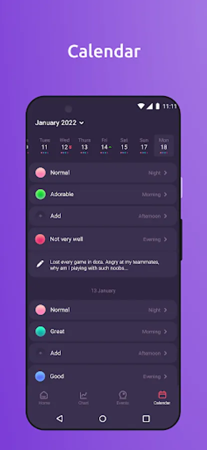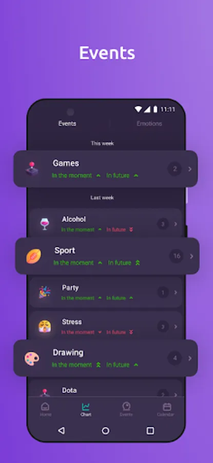 4. Evaluate the impact of events: Mark events, and the app will automatically suggest which events have the most significant impact on your well-being and future mood.