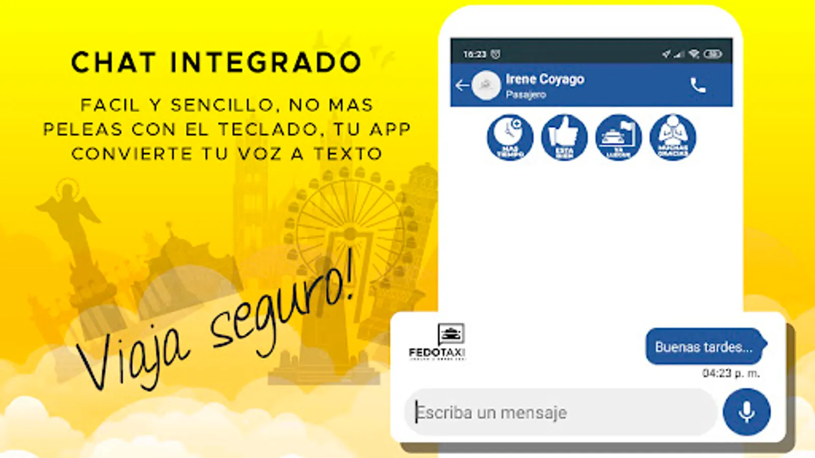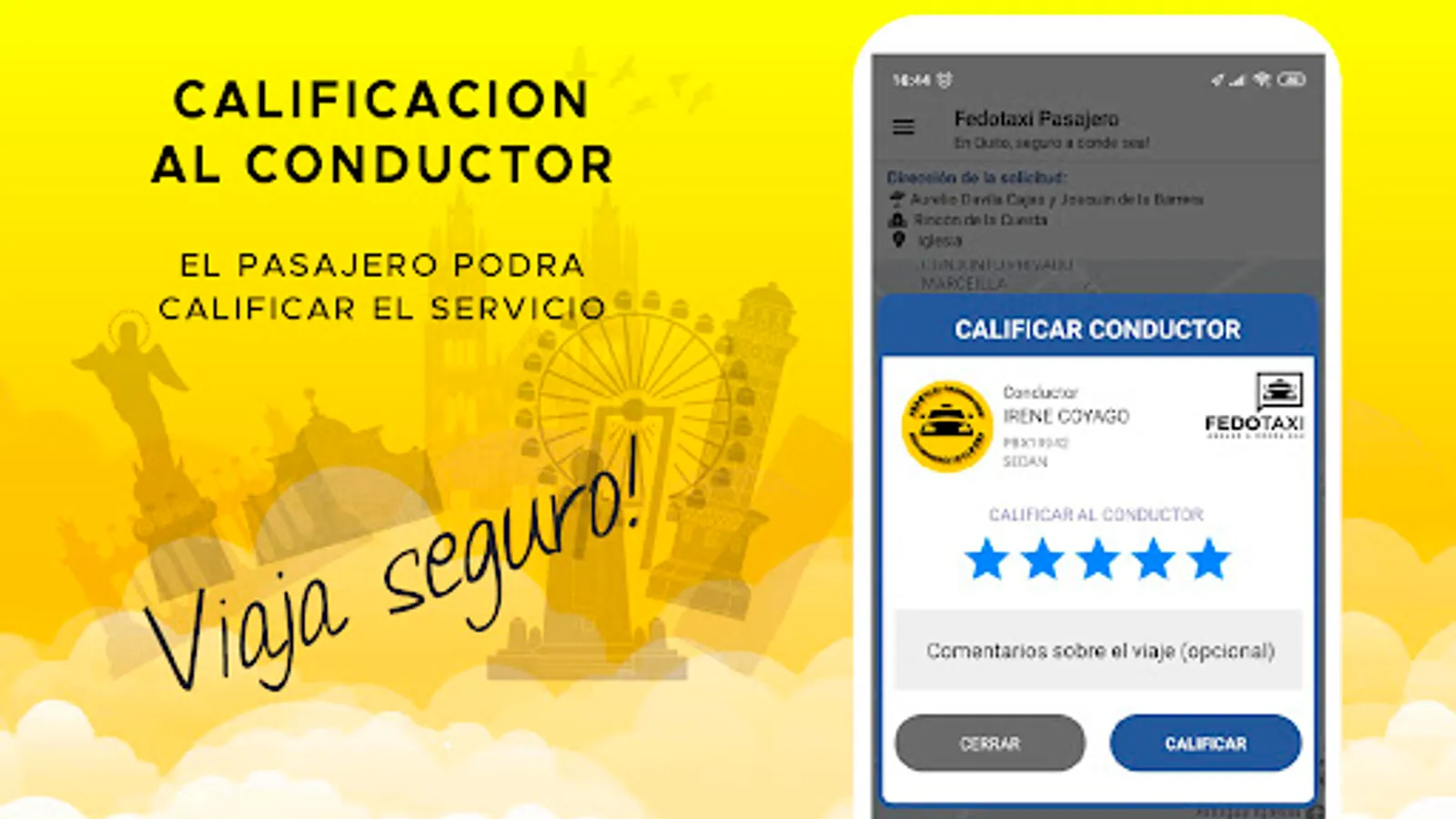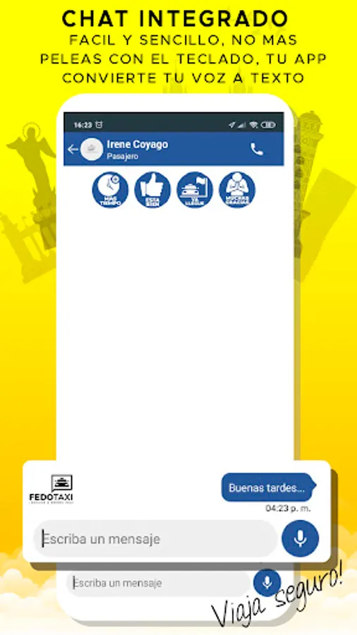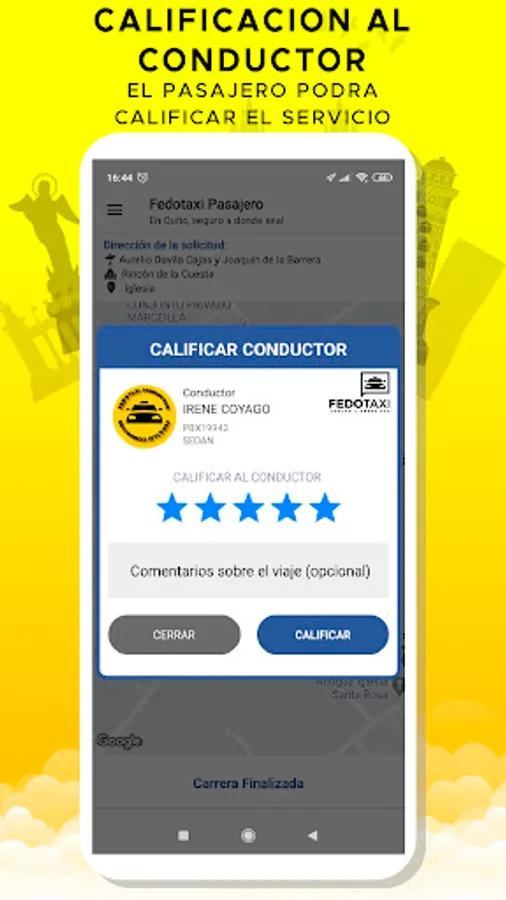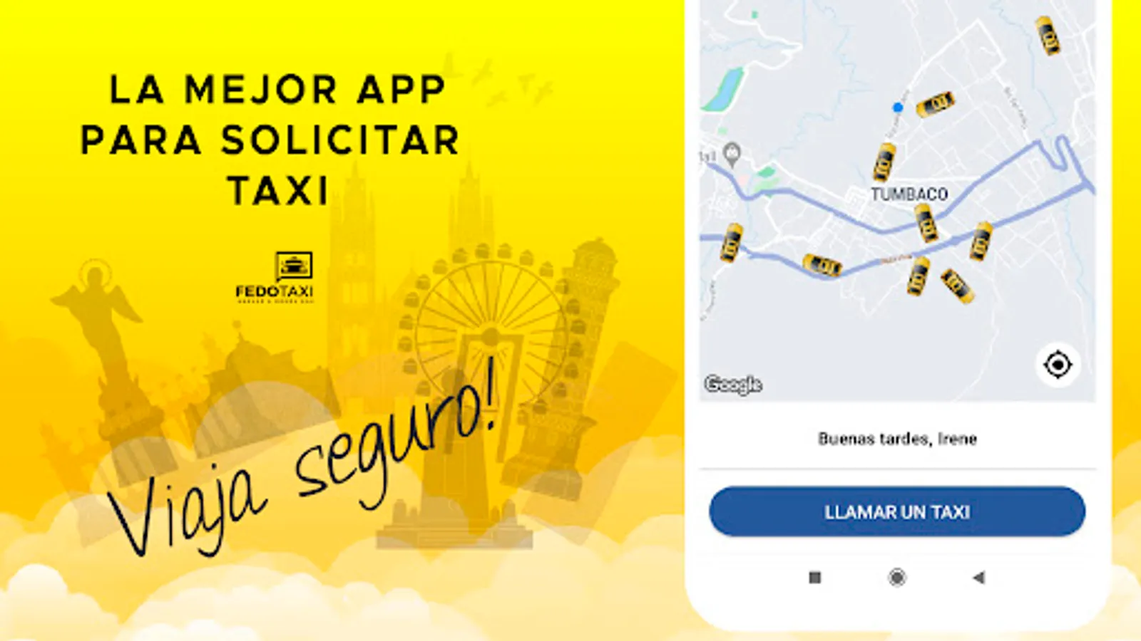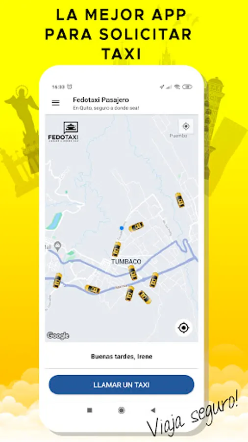 Fedotaxi Pasajero is an application for people who need to be transported safely and with quality in Ecuador, the drivers that are linked to Fedotaxi are professional drivers who work in legal taxis, with Fedotaxi you will find all types of payment from cash to credit card and debit, giving you a personal and specialized treatment wherever you are. With Fedotaxi, safe anywhere!