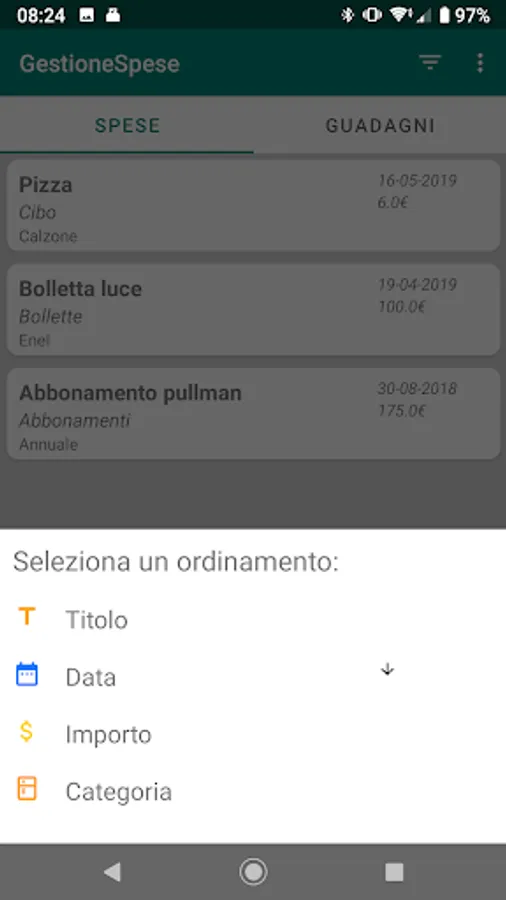 - View expenses based on the order you prefer (Title, Cost, Date or Category)