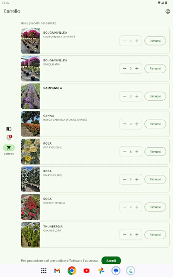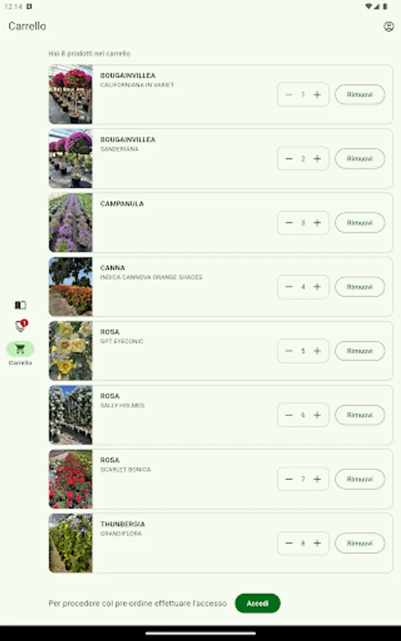 With the Vivaio Increase app you can browse the online catalogue, discover the products on promotion, obtain detailed information on each plant and send and manage purchase pre-orders.