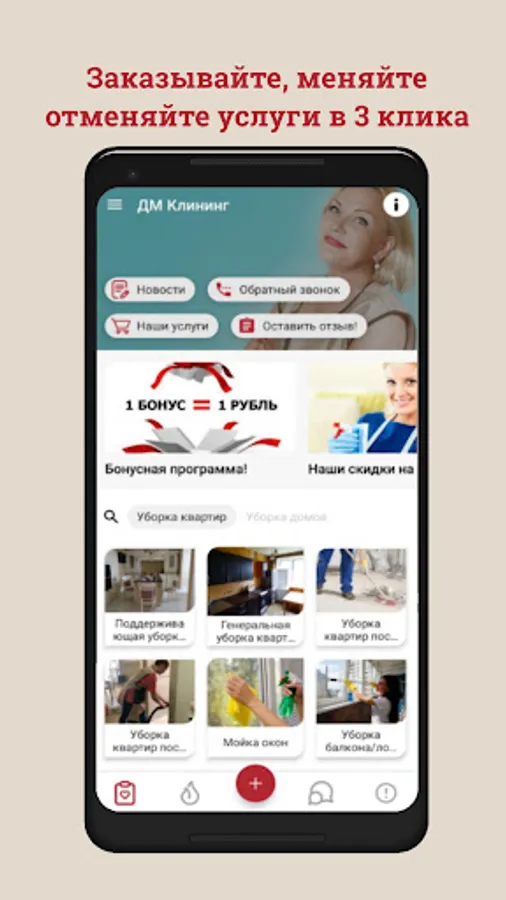 The mobile application "DM-Cleaning" allows you to: