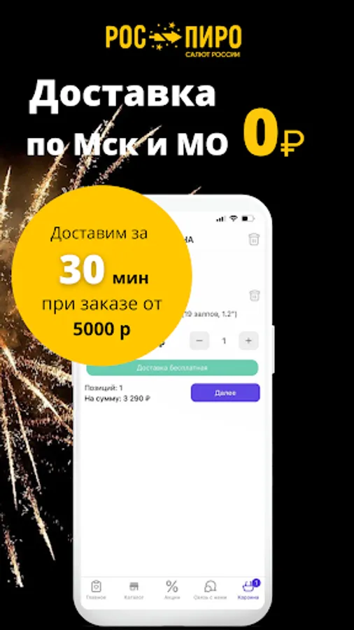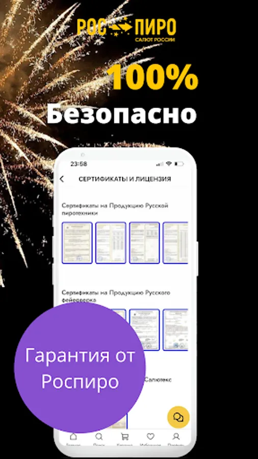 We were the first in our niche to enter the mobile application market to make it convenient for you to buy pyrotechnic products and holiday goods with a 24/7 consultation. But most importantly, we guarantee the quality and 100% safety of our products. We sell only proven and certified products from leading manufacturers, and we check and test everything before selling.