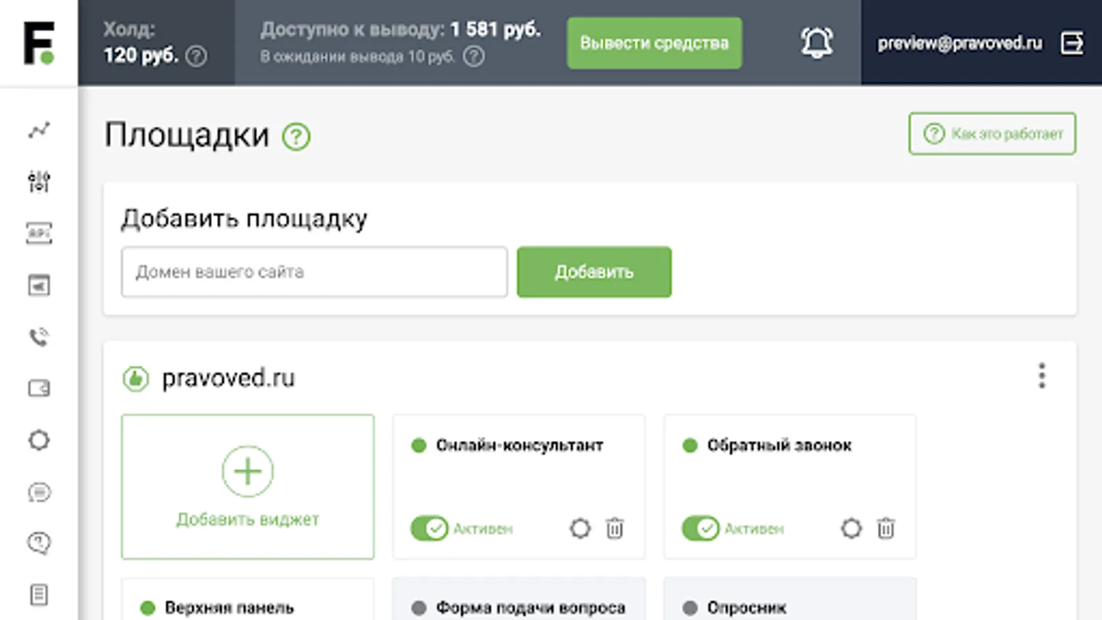 Detailed statistics on your applications and payments, site and widget builders, interactive instructions.