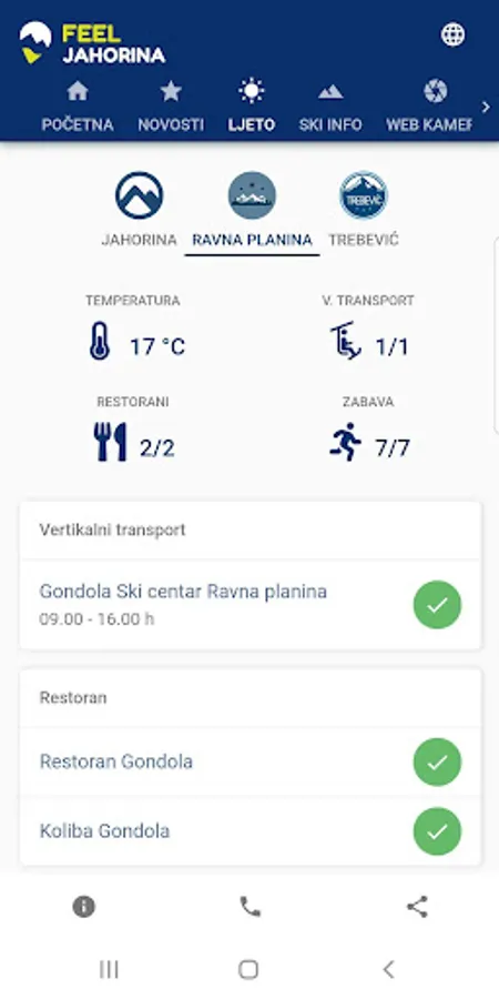 Summer and ski info, event announcement, activities, news, webcams, weather forecast, tourist attractions, accommodation, transport, map, important phones are available in just one click.